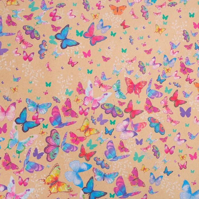 Бумага упаковочная крафтовая «Хоровод бабочек», 50 × 70 см