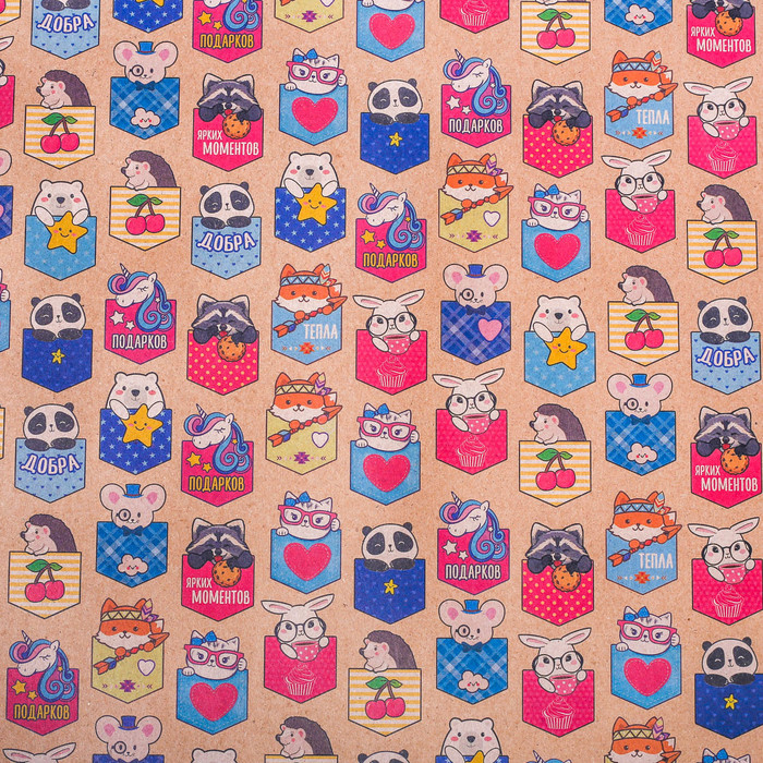 Бумага упаковочная крафтовая «Кармашки со зверятами», 50 × 70 см