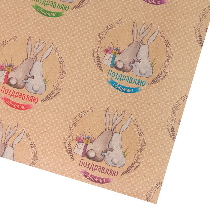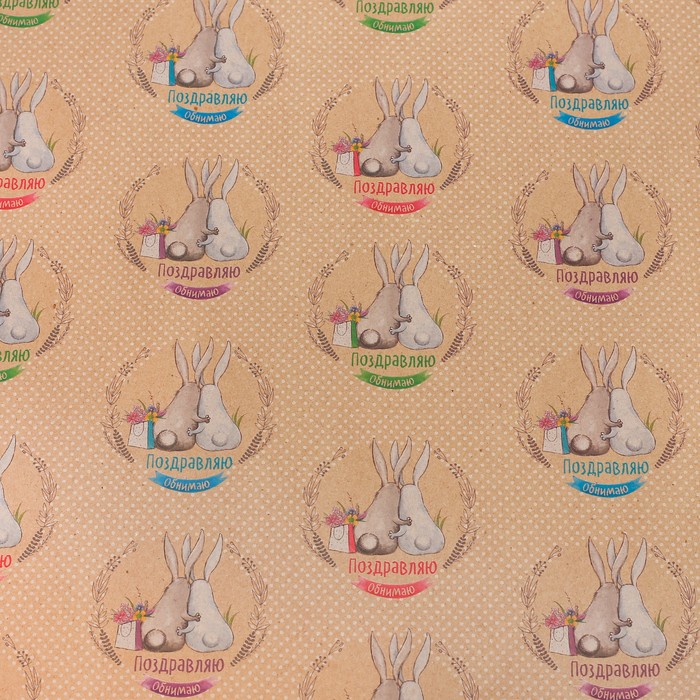 Бумага упаковочная крафтовая «Обнимаю», 50 × 70 см