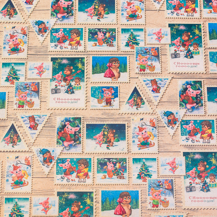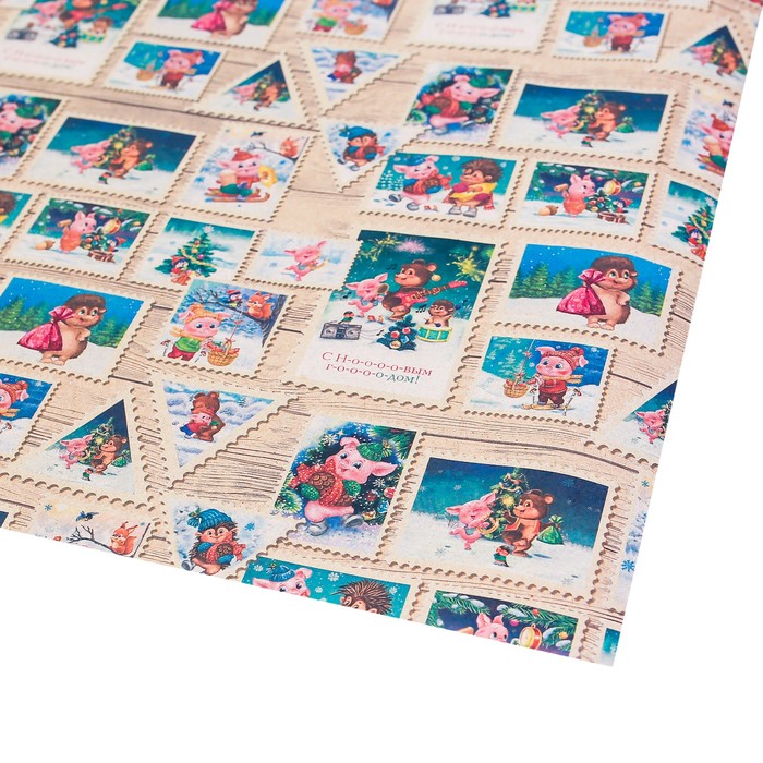 Бумага упаковочная крафтовая «Почтовые марки», 50 × 70 см