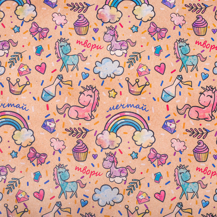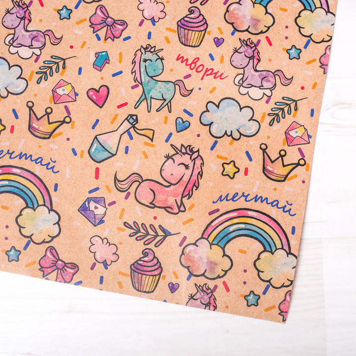 Любой подарок начинается с упаковки. Что может быть трогательнее и волшебнее, чем ритуал разворачивания полученного презента. И именно оригинальная, со вкусом выбранная упаковка выделит ваш подарок из массы других. Она продемонстрирует самые тёплые чувства к виновнику торжества и создаст сказочную атмосферу праздника. Бумага упаковочная крафтовая «Твори и мечтай», 50 × 70 см — это то, что вы искали.