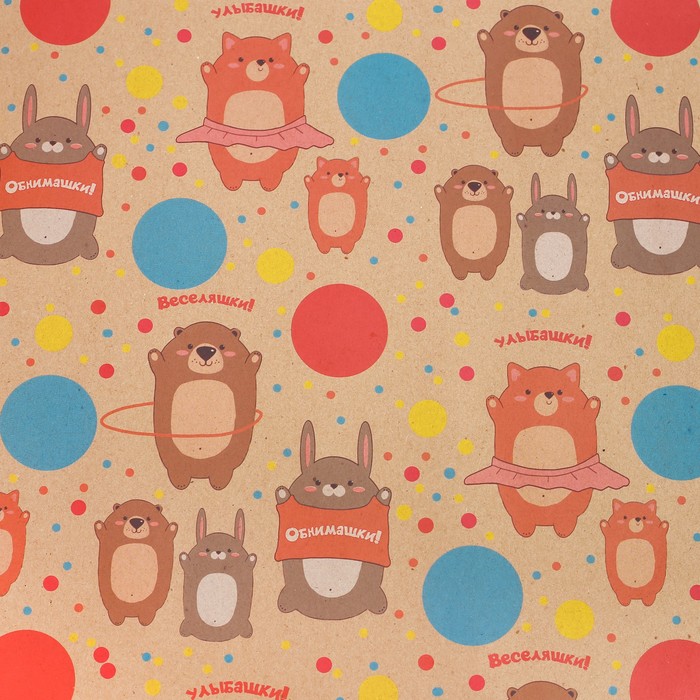 Любой подарок начинается с упаковки. Что может быть трогательнее и волшебнее, чем ритуал разворачивания полученного презента. И именно оригинальная, со вкусом выбранная упаковка выделит ваш подарок из массы других. Она продемонстрирует самые тёплые чувства к виновнику торжества и создаст сказочную атмосферу праздника. Бумага упаковочная крафтовая «Веселяшки», 50 × 70 см — это то, что вы искали.