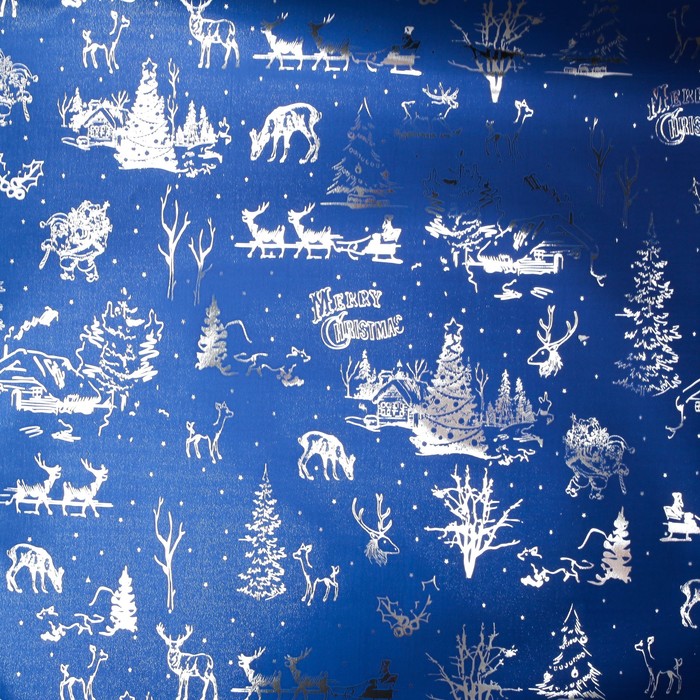 Бумага упаковочная метализированная, сине-серебряный, 50 см х 5 м
