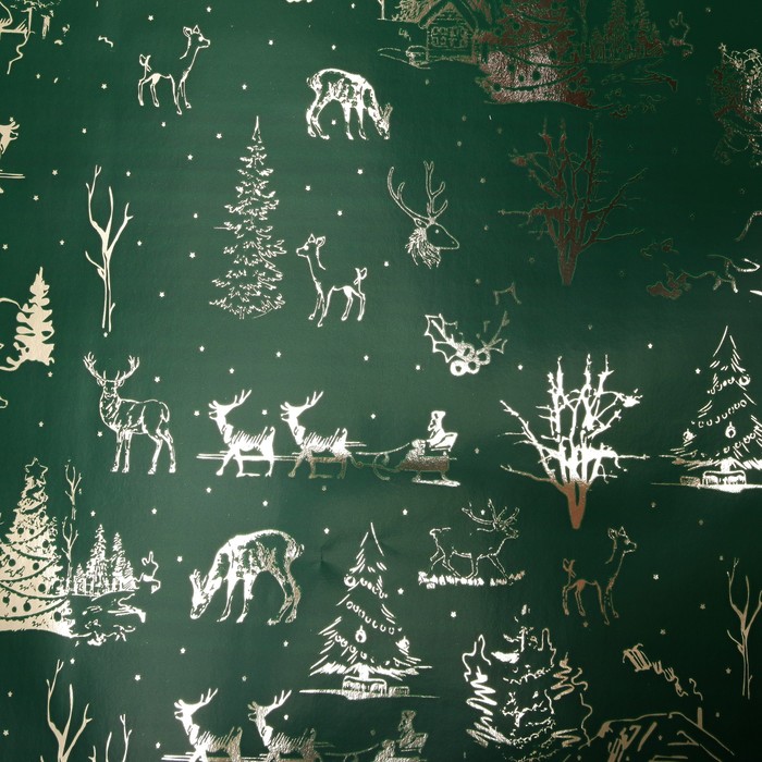 Бумага упаковочная метализированная, зелёно-золотой, 50 см х 5 м