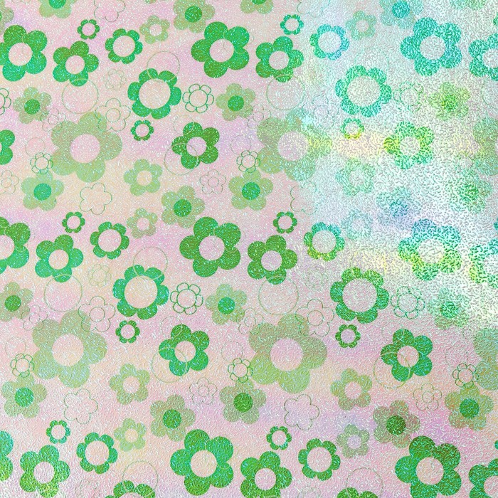 Бумага упаковочная перламутровая "Ромашки", зелёный, 50 х 70 см