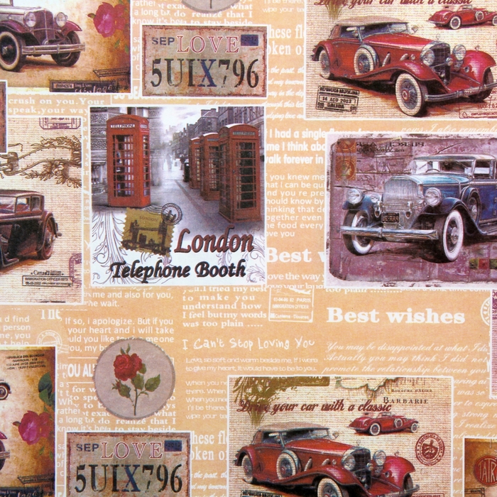 Бумага упаковочная "Ретро автомобили", 52 х 73 см