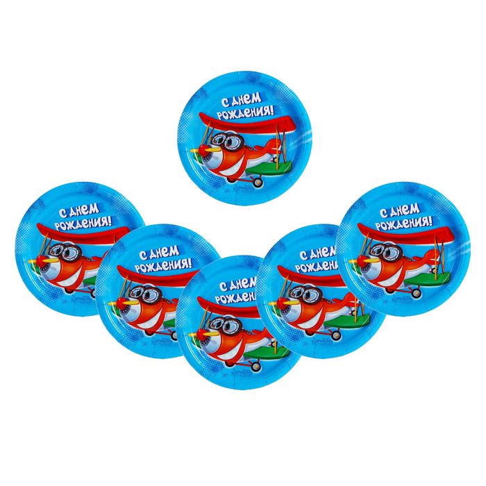 Бумажная тарелка "С Днём Рождения", Самолётик, 18 см