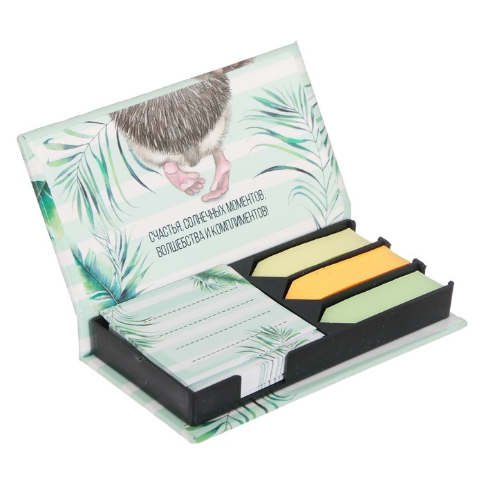Бумажный блок в пластиковом футляре "Для самых-самых важных дел": 100 листов и 3 набора стикеров