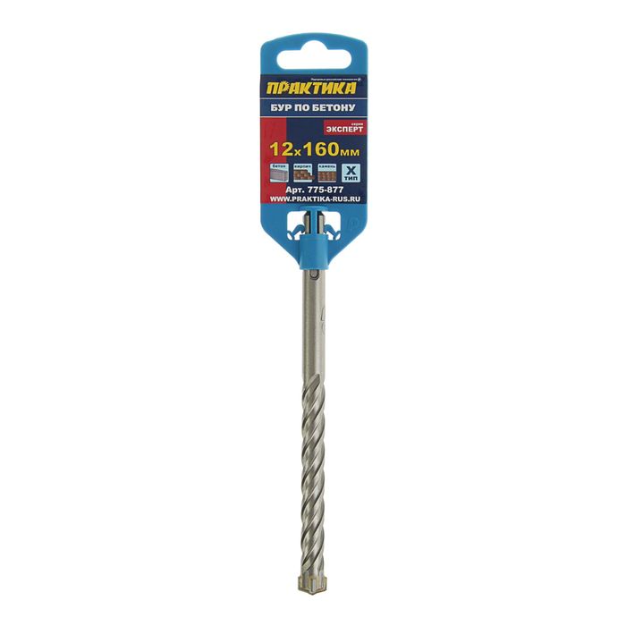 Бур по бетону "ПРАКТИКА" 775-877, SDS-plus, Х-тип, 12 х 160 мм