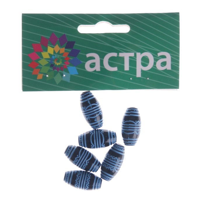 Бусины пластик "Узоры ацтеков" набор 6шт, 20х10мм (CX-6085, 006 черн-синий)