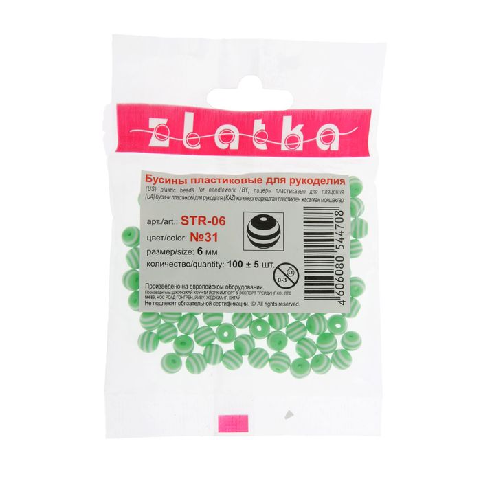 Бусины "Zlatka" акрил STR-06 6мм набор 100±5шт (31 салатово-белый)