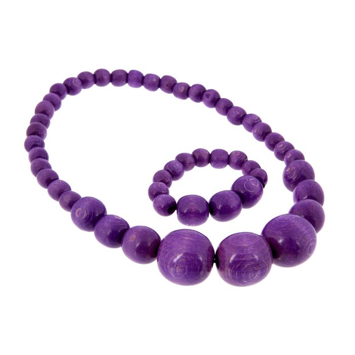 Бусы деревянные "Нарастающие" с браслетом, сиреневые