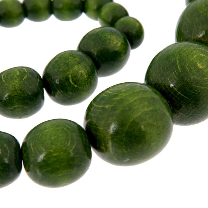 Бусы деревянные "Нарастающие" с браслетом, зелёные