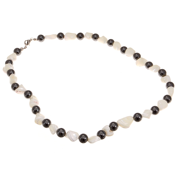 Роскошные бусы "Гематит с перламутром" галтовка с шаром, цвет белый, 45см станут ярким дополнением наряда, придадут ему пикантную нотку и без слов помогут рассказать о присущем вам чувстве стиля. Перламутровое украшение подойдёт практически всем знакам зодиака: наполнит их жизнь новыми и интересными событиями, обеспечит в доме гармонию. Наиболее сильное влияние оно окажет на модниц, родившихся под знаком Водолея и Рыб. Своим обладательницам бусы принесут успех в профессиональной карьере и удачу в любых их начинаниях.