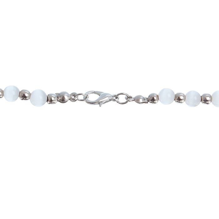 Бусы "Кошачий глаз" 2 яруса, шар с металлом, цвет белый, 60см