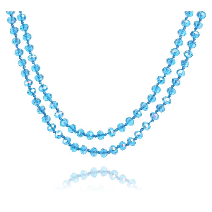 Бусы шар №8 граненый через узел "Хрусталь", цвет голубой, 100см