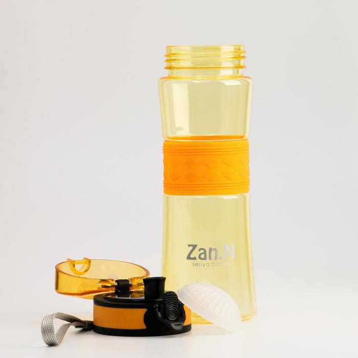 Бутылка для воды 550 мл Zan, на шнурке, резиновая вставка, микс, 7х7х22 см