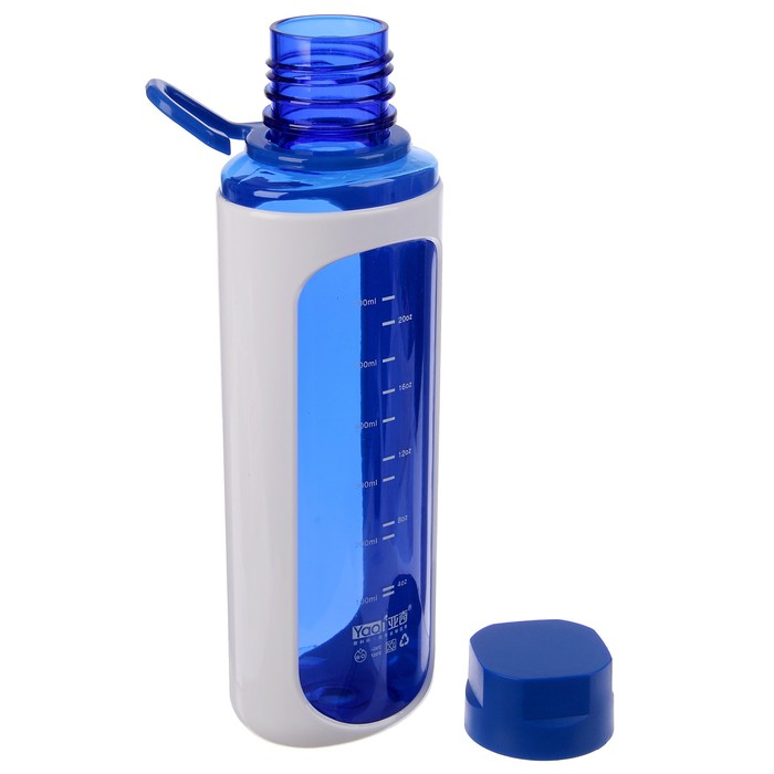 Бутылка для воды 600 мл, спортивная, шкала, с ручкой, непрозрачные вставки, микс, 7х25 см