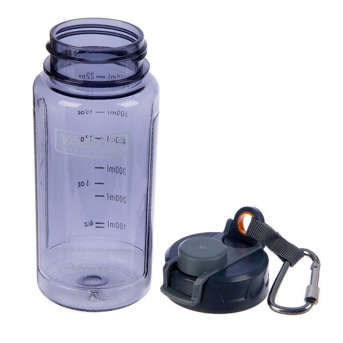 Бутылка для воды 650 мл, спортивная, крышка, шкала, на карабине, микс, 7.5х19 см