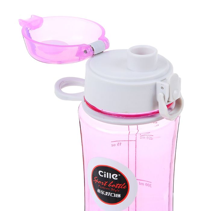 Бутылка для воды с поильником и откидной крышкой с кнопки, 650 мл, микс