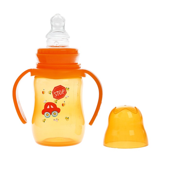 Бутылочка для кормления цветная с ручками, 150 мл, от 0 мес., цвет золотой