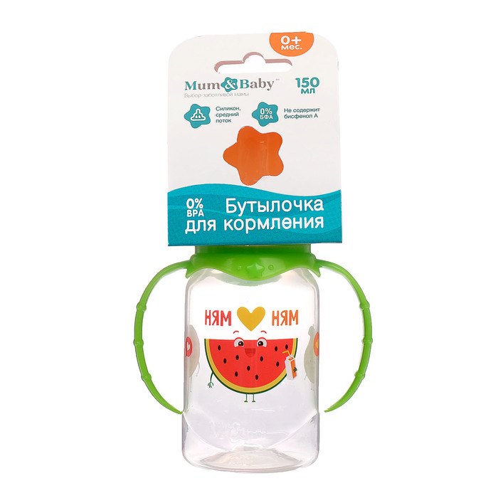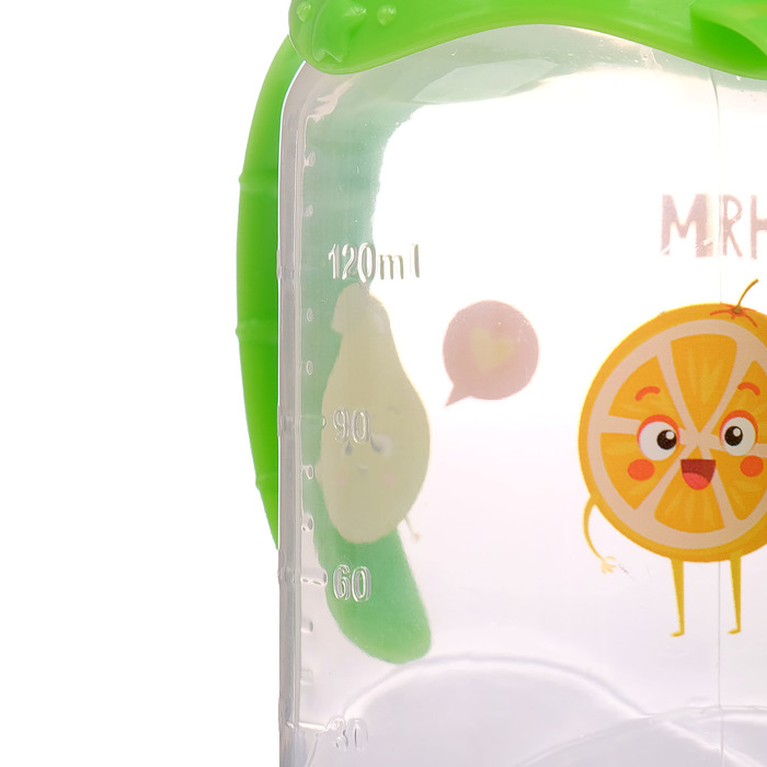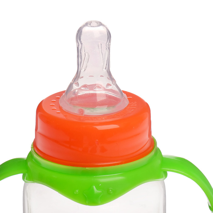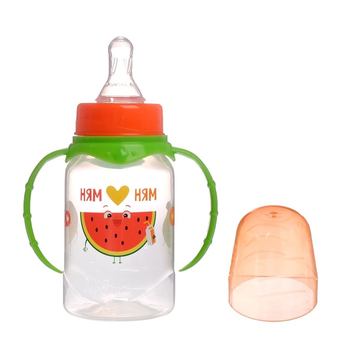 Бутылочка для кормления «Фруктовое счастье» детская классическая, с ручками, 150 мл, от 0 мес., цвет зелёный