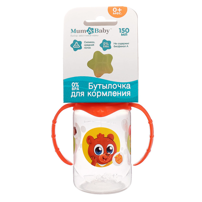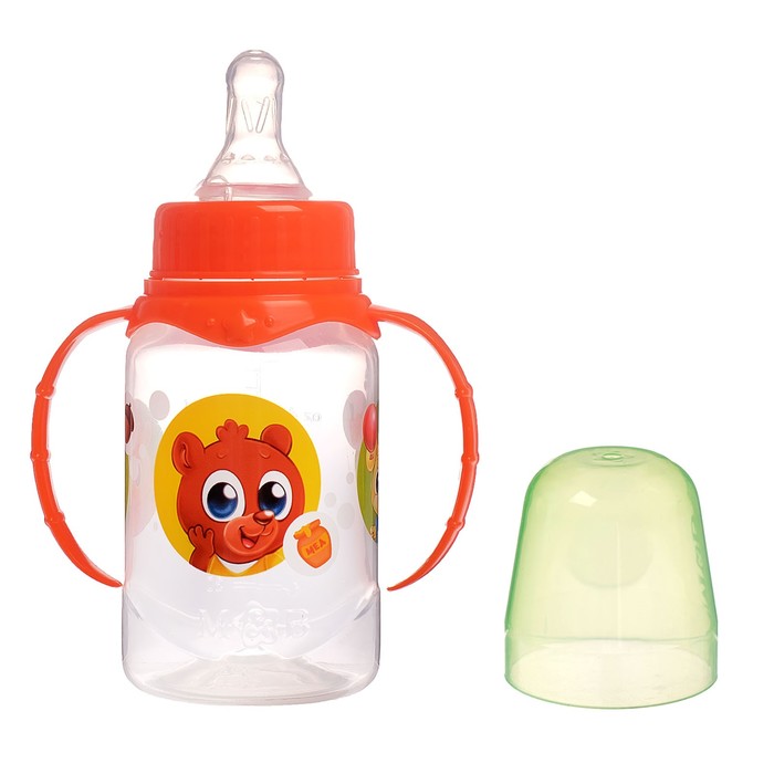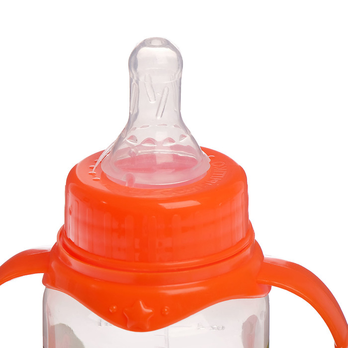Бутылочка для кормления «Лесные малыши» детская классическая, с ручками, 150 мл, от 0 мес., цвет оранжевый