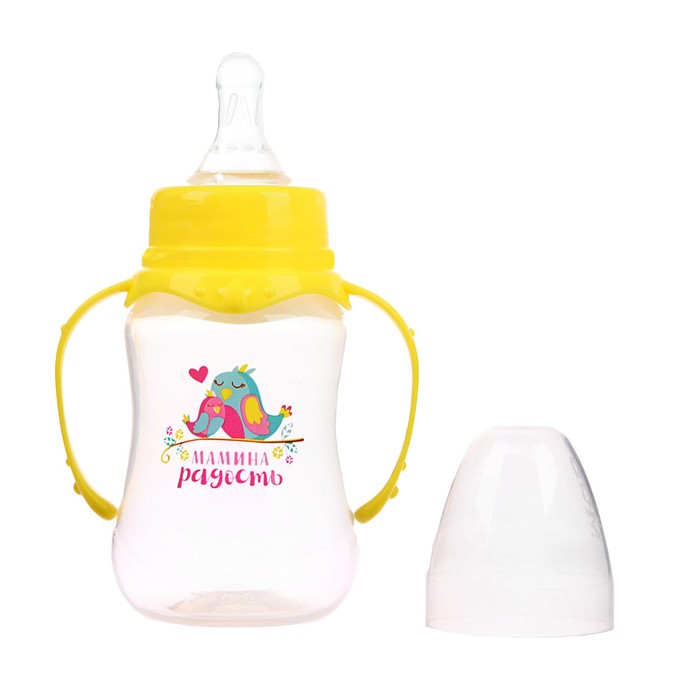 Бутылочка для кормления «Мамина радость» детская приталенная, с ручками, 150 мл, от 0 мес., цвет жёлтый