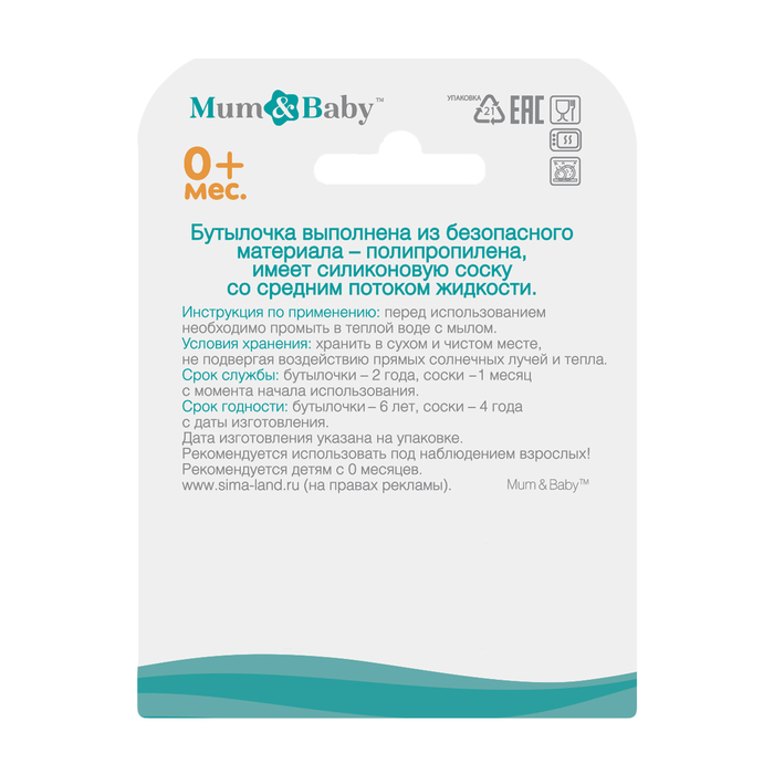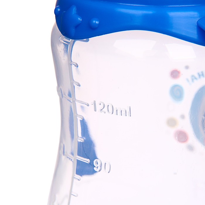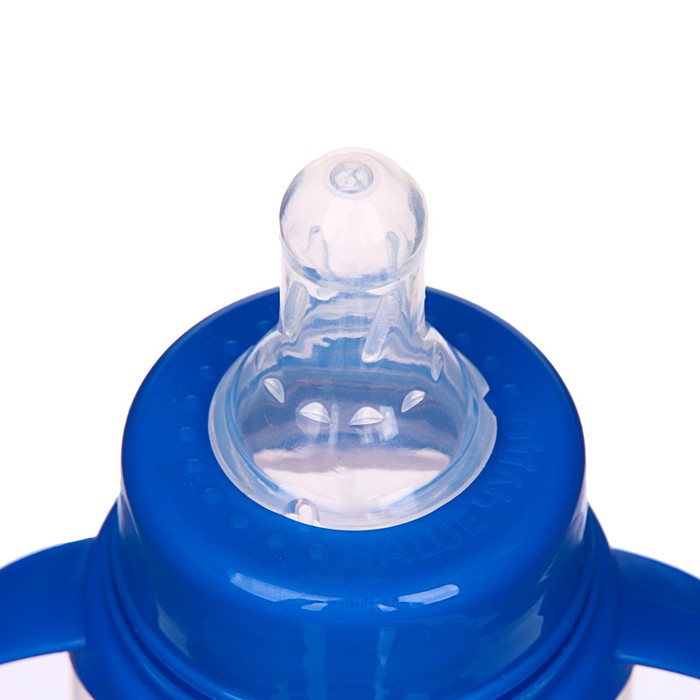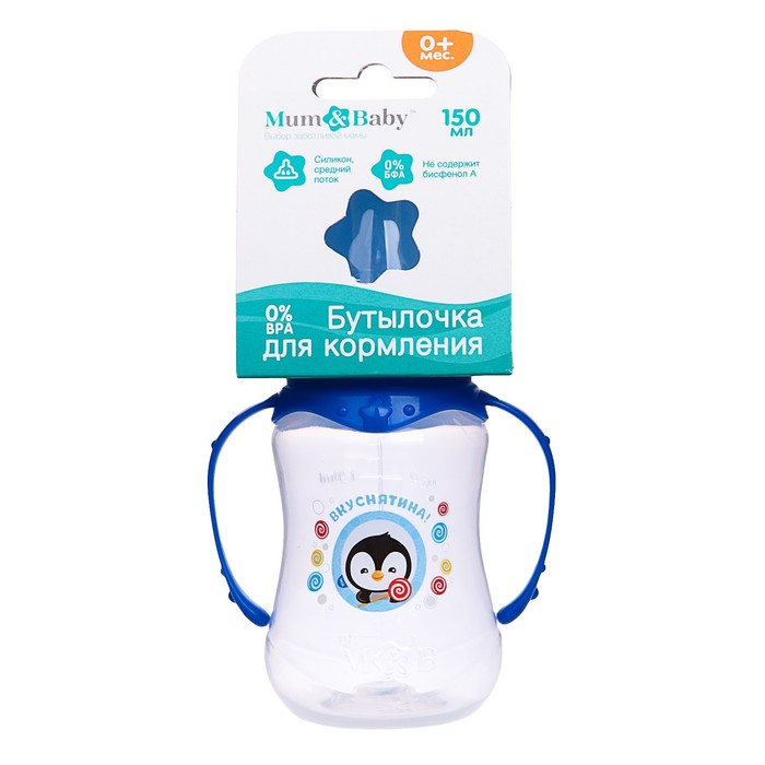 Бутылочка для кормления «Пингвинёнок Рокки» детская приталенная, с ручками, 150 мл, от 0 мес., цвет синий