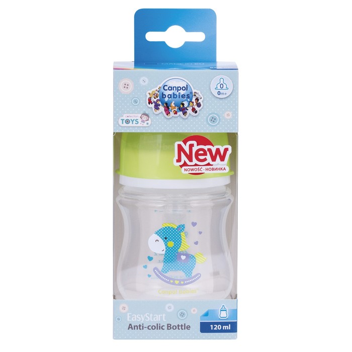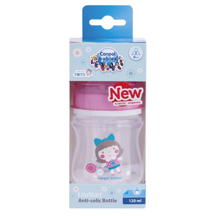 Бутылочка для кормления PP EasyStart с широким горлышком антиколиковая, 120 мл, возраст 0+, цвет МИКС