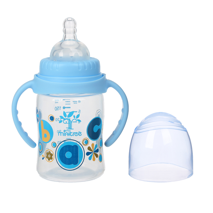 Бутылочка для кормления с ручками, 180 мл, от 3 мес., цвет голубой