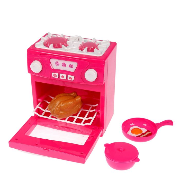 С функциональной газовой плитой у юной хозяюшки появится больше идей для кулинарных экспериментов. Малышка с удовольствием будет придумывать новые рецепты и каждый день готовить что-нибудь вкусненькое: к завтраку девочка пожарит яичницу, а к обеду запечёт курицу в духовке — для этого в наборе есть вся необходимая посуда и продукты.