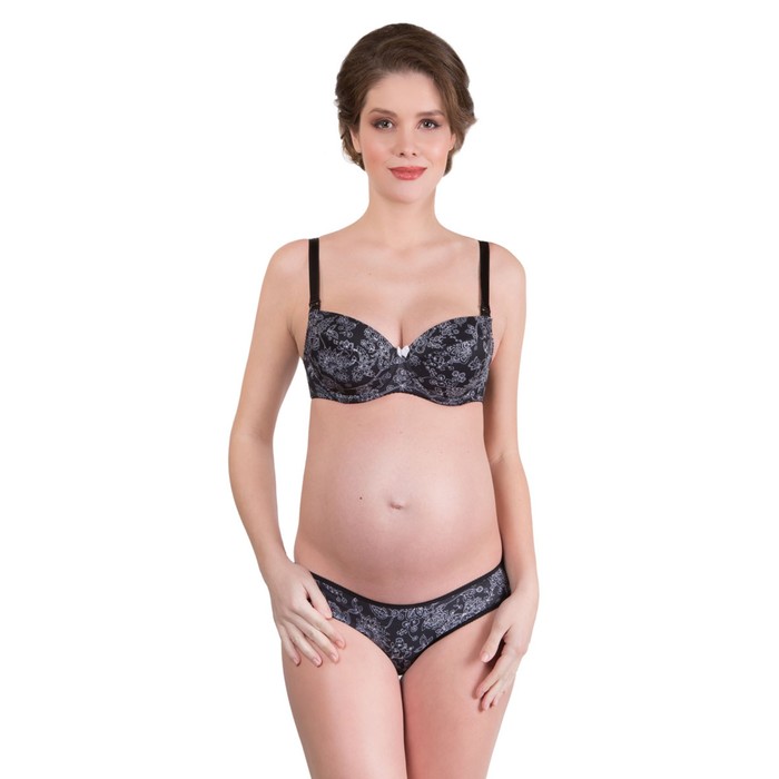 Бюстгальтер послеродовый "Илона", чёрный с цветами, размер 75-B