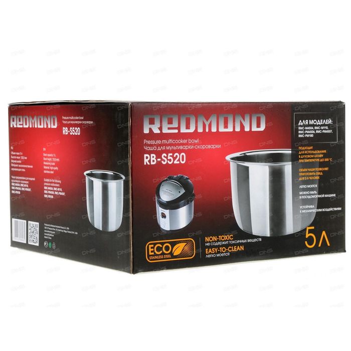 Чаша Redmond предназначена для приготовления различных блюд в фирменных мультиварках RMC-M110, RMC-PM4506,RMC-PM4507. Изделие выполнено из высококачественной нержавеющей стали и устойчиво к механическим повреждениям. Данная модель подходит для использования в духовом шкафу.