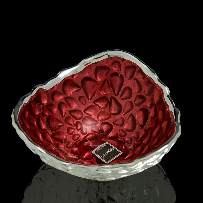 Кажется, что эта посуда стояла на подоконнике открытого окна и проливной летний дождь, отшумев, оставил на ней крупные капли. Простая и вместе с тем эффектная чаша "Капли", красная изготовлена на известной итальянской фабрике Silvan, вот уже почти пятьдесят лет радующей ценителей элегантности и поклонников благородного металла: внешняя поверхность вазы покрыта серебром 999-й пробы.