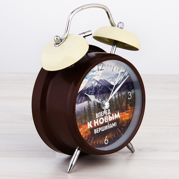 Каждому хозяину периодически приходит мысль обновить свою квартиру, сделать ремонт, перестановку или кардинально поменять внешний вид каждой комнаты. Часы будильник "Вперед к новым вершинам", d=11 см — привлекательная деталь, которая поможет воплотить вашу интерьерную идею, создать неповторимую атмосферу в вашем доме. Окружите себя приятными мелочами, пусть они радуют глаз и дарят гармонию.