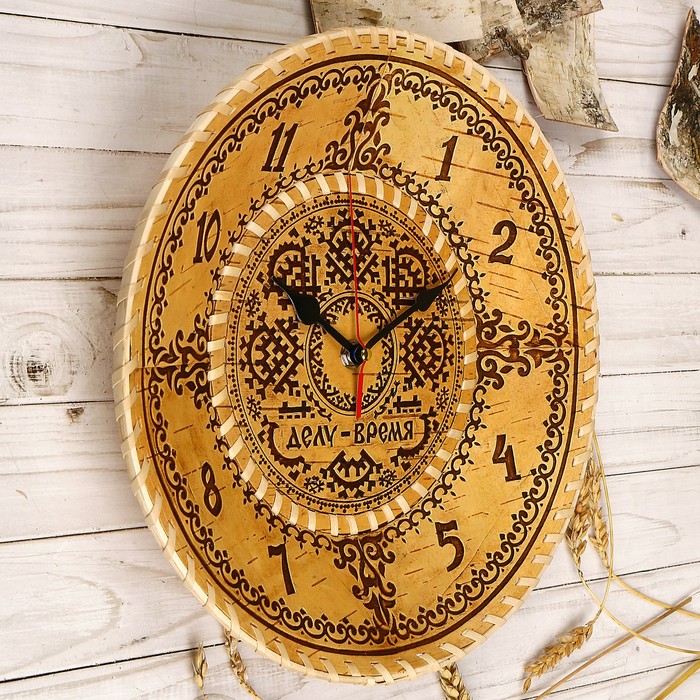 Часы «Делу время», резные, 30х30х5,5 см, береста