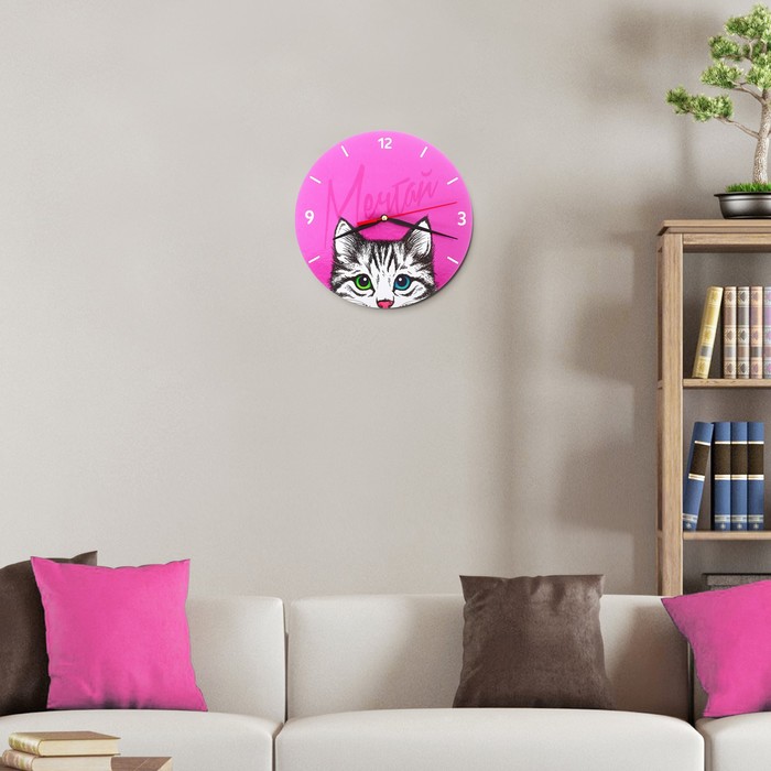 Каждому хозяину периодически приходит мысль обновить свою квартиру, сделать ремонт, перестановку или кардинально поменять внешний вид каждой комнаты. Часы деревянные "Мечтай" кот, d=25 см — привлекательная деталь, которая поможет воплотить вашу интерьерную идею, создать неповторимую атмосферу в вашем доме. Окружите себя приятными мелочами, пусть они радуют глаз и дарят гармонию.