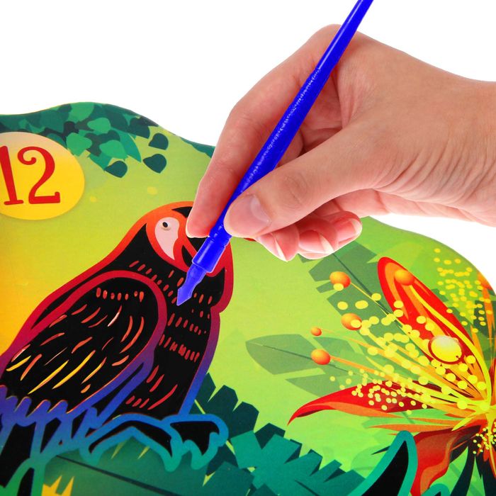 - С помощью штихеля сотрите защитный слой или нарисуйте узор, чтобы выступила цветная основа.