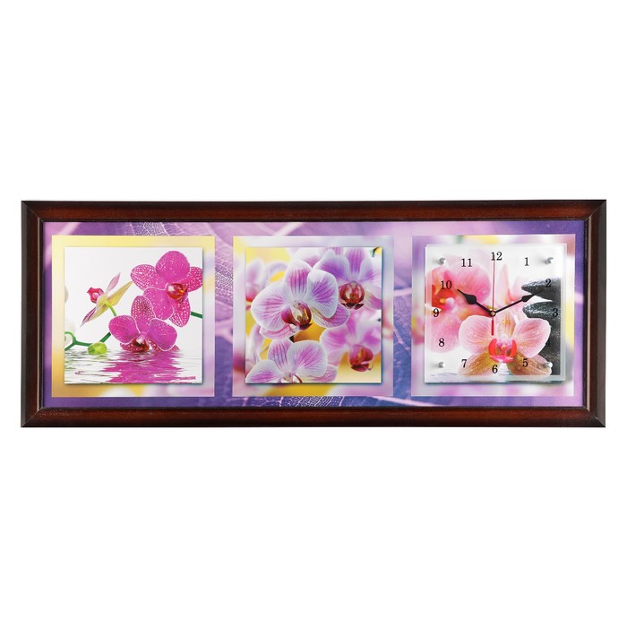 Часы-картина настенные "Фиолетовые орхидеи", 35х100 см микс