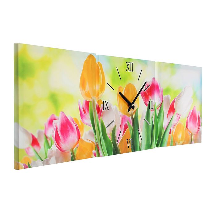 Часы-картина настенные прямоугольные «Весенние тюльпаны», 35 × 105 см