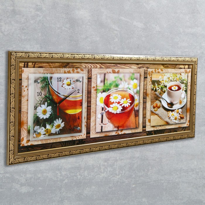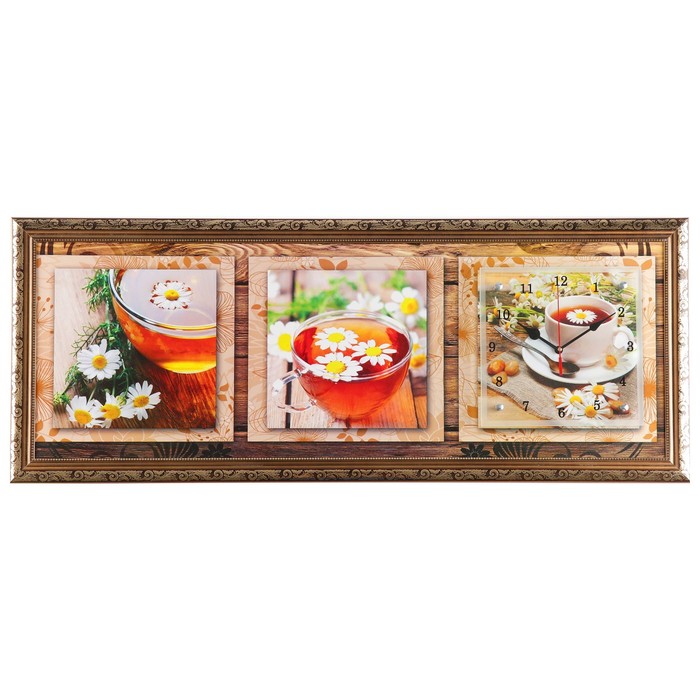 Часы-картина настенные "Ромашковый чай", 35х100 см микс