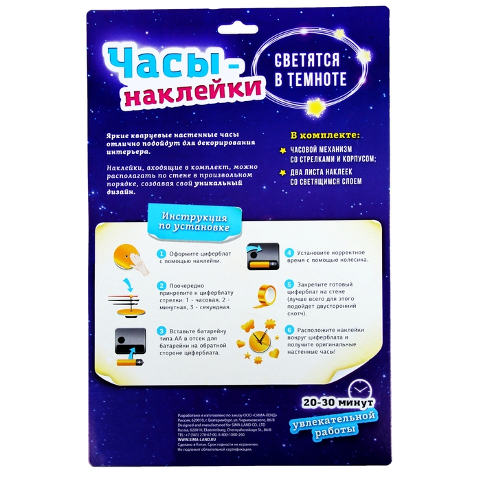 - Закрепите готовые часы на стене с помощью двусторонней липкой ленты (не входит в комплект).