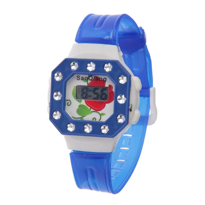 Часы наручные детские, электронные, цифер-т квадрат со стразами, микс, силик, ремешок 20 см