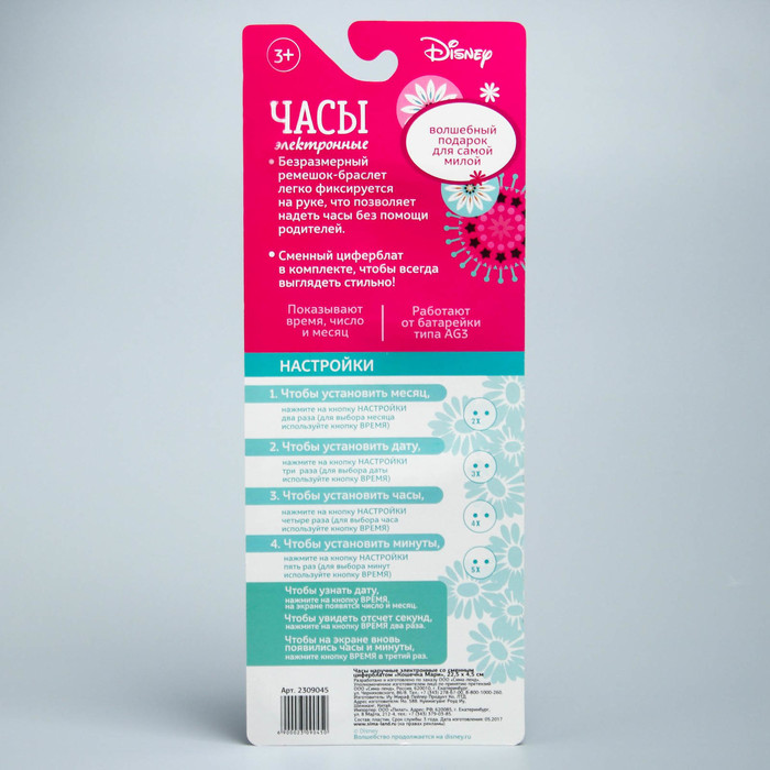 Часики выполнены из гипоаллергенных материалов, поэтому их смело можно надевать на нежную кожу ребёнка.