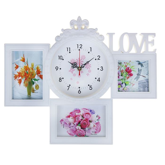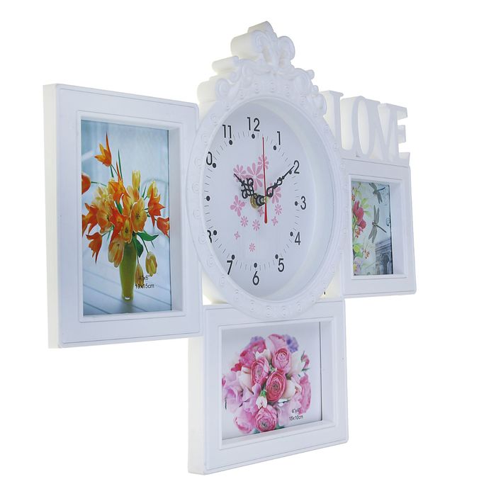 Часы настенные хайтек+3 фоторамки Love белые, цифер микс (фото 10х10-1шт 10х15-2шт) 37*44см