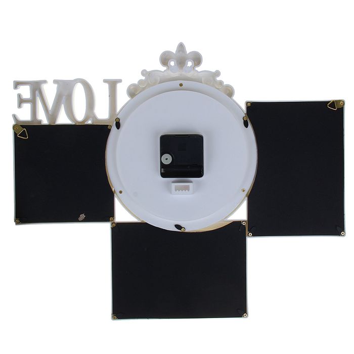 Каждому хозяину периодически приходит мысль обновить свою квартиру, сделать ремонт, перестановку или кардинально поменять внешний вид каждой комнаты. Часы настенные хайтек+3 фоторамки Love белые, цифер микс (фото 10х10-1шт 10х15-2шт) 37*44см — привлекательная деталь, которая поможет воплотить вашу интерьерную идею, создать неповторимую атмосферу в вашем доме. Окружите себя приятными мелочами, пусть они радуют глаз и дарят гармонию.