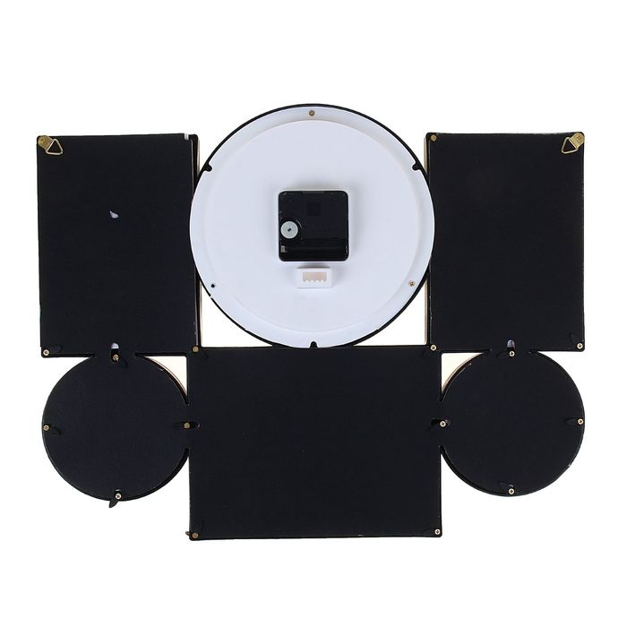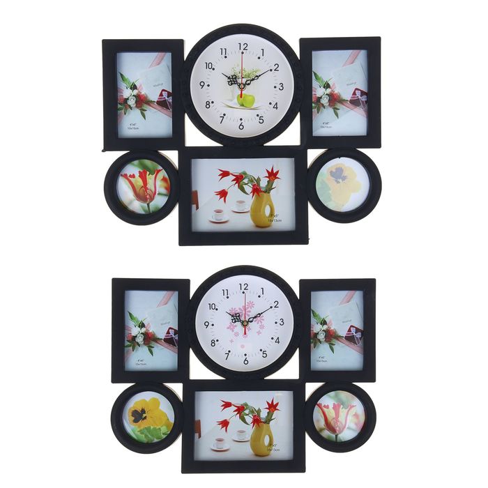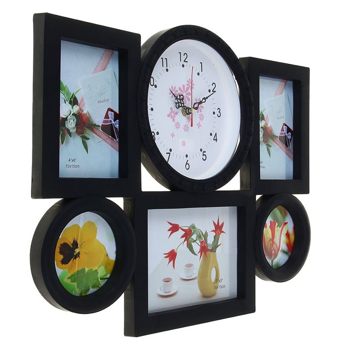 Часы настенные хайтек+5 фоторамок черные цифер микс (фото 10х10-2шт 10х15-2шт 13х18)37*47см