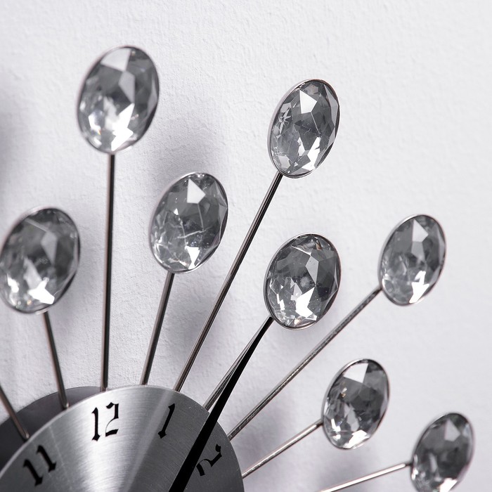 Часы настенные интерьерные "Лучики", d=34 см, кристаллы серебристые
