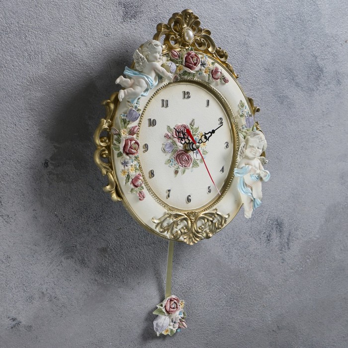 Часы настенные интерьерные "Розы и ангелочки" с маятником